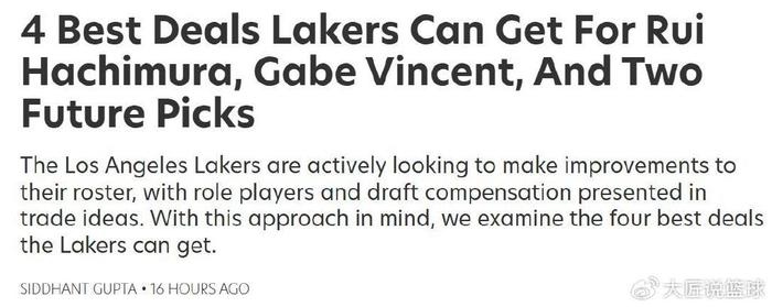 只不过,考虑到湖人队与黄蜂队曾因为马威的交易闹得非常不愉快,后者短时间内未必愿意再与湖人队交易。